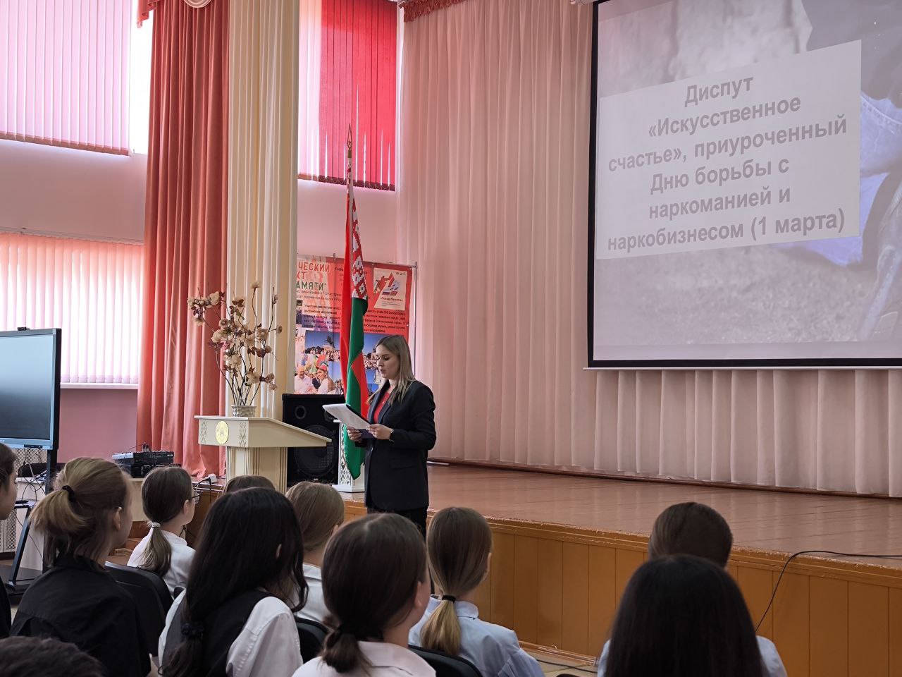 17 марта отдел по работе с детьми и молодежью Слонимского районного центра культуры подготовил и провёл диспут «Искусственное счастье» для учащихся 7 — 8 классов ГУО «Средняя школа №3 г. Слонима». Ребята узнали о ловушках наркоторговцев и о том, как наркотики влияют на здоровье человека, познакомились со статьями Уголовного кодекса Республики Беларусь. Завершилась встреча просмотром видео ролика «Сделай правильный выбор».