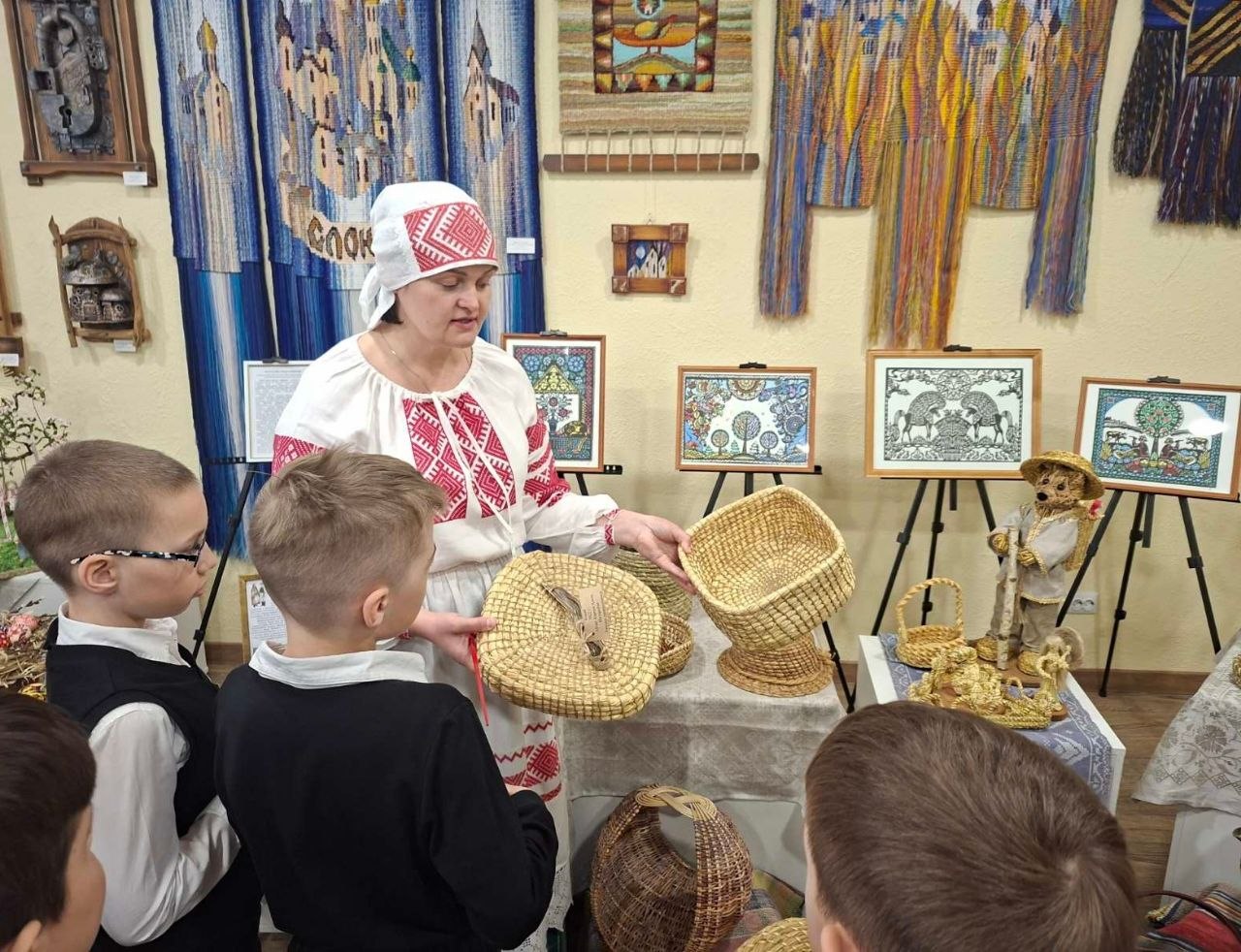 Майстры Слонімскага аддзела рамёстваў правялі арт-час у рамках выстаўкі «Магія травы, саломы і выцінанкі» творчых работ майстроў аддзела традыцыйнага мастацтва і рамёстваў «Мастоўскага раённага цэнтра культуры» для вучняў 2 «Б» класа Сярэдняй школы №10 імя В.І.Пеленіцына і 6 «А» класа Сярэдняй школы №4 імя П.І.Батава г.Слоніма.