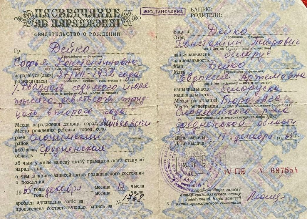 Героиня нашей сегодняшней встречи Евгения Даниловна Овсейчик, 1928 года рождения, жительница деревни Колосово, которой удалось трижды обмануть смерть. И сегодня ещё одна история войдёт в сборник…История о маленькой девочке Жене.