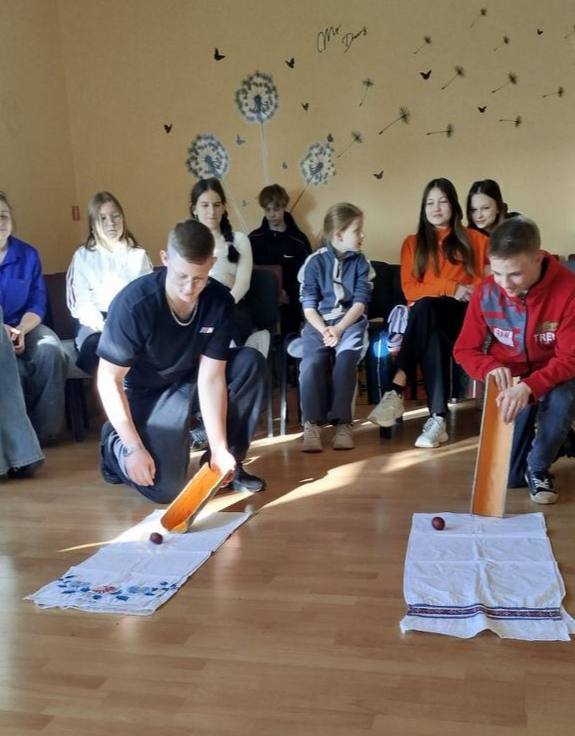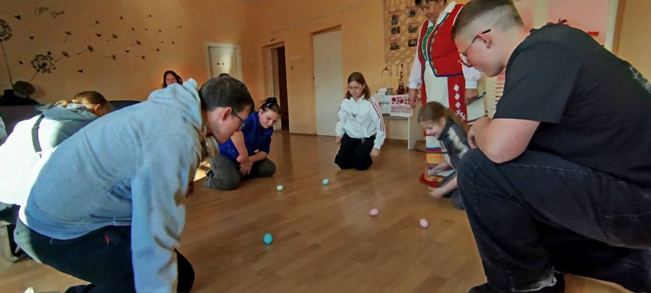 «Катание яиц», «битки» и игры с рушниками — специалисты сельских клубных учреждений Слонимского района провели игровые программы, посвящённые светлым пасхальным традициям.